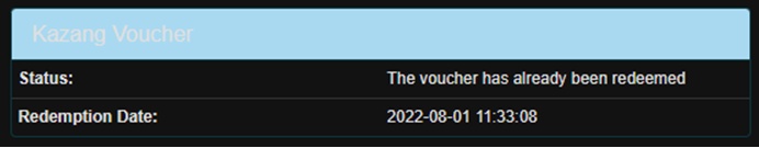 | This voucher has already been redeemed | This means that the customer has already redeemed on the provided Date and Time. | ![]() |